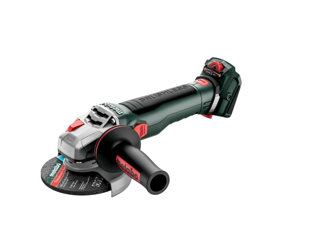 Bezuhlíková akumulátorová úhlová bruska nové generace: stejně výkonná jako 1100wattové napájení ze sítě díky výkonu vyššímu o 40 %, Bezúdržbový bezuhlíkový motor s maximální účinností a ovladatelností, Variabilní nastavení rychlosti s regulačním kolečkem pro práci s otáčkami odpovídajícími materiálu, které zůstávají při zatížení konstantní, Rychlý brzdný systém pro maximální ochranu uživatele: Kotouč se po vypnutí zastaví do 1 sekundy, Systém Quick Metabo pro výměnu kotouče bez použití nářadí stiskem tlačítka, Ochranný kryt nastavitelný bez použití nářadí; odolný vůči zkrutu, Akumulátorový článek otočný v krocích po 90° pro nejlepší ergonomii v každé pracovní poloze, Bezpečnostní mechanická spojka Metabo S-automatic: V případě zablokování kotouče minimalizuje zpětný ráz na nejnižší úroveň na trhu – pro maximální ochranu uživatele, Elektronická ochrana proti přetížení, pozvolný rozběh a ochrana proti opětovnému spuštění, Snímatelný protiprachový filtr jako ochrana motoru před hrubými částicemi.
